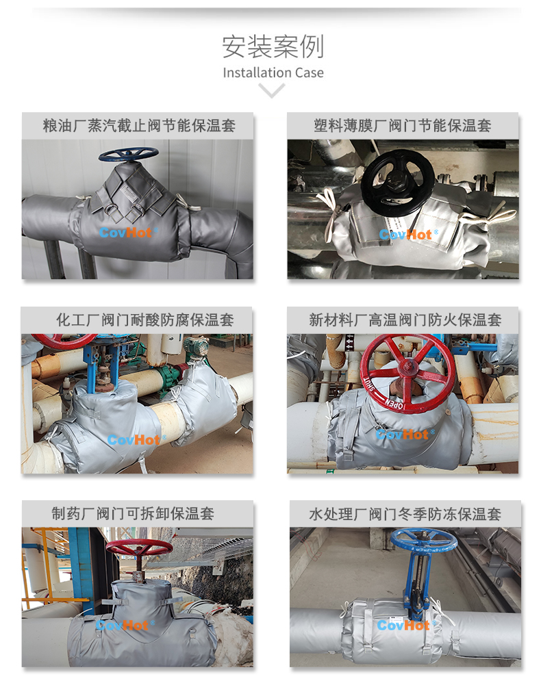 可拆卸保溫套的安裝也需要遵守相關的標準和規定。首先,考慮到保溫套安裝時的便捷性,應采用專用的固定裝置,如卡箍、魔術貼、拉帶、鋼絲繩等,確保固定可靠,不易松動。其次,安裝過程中需要注意尺寸和位置的準確性,避免出現裂縫、滲漏和冷橋等問題。最后,保溫套的接口處應采用密封材料進行密封,以防止熱量泄漏和漏水。